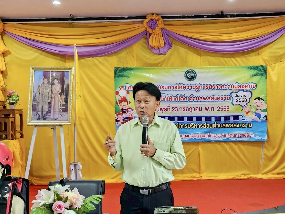 23 กรกฎาคม 2568 เวลา 09.00 น. ผู้บริหาร/เจ้าหน้าที่พัฒนาชุมชนองค์การบริหารส่วนตำบลพลสงครามโดยนายกวิเชียร ชาติผดุง ประธานเปิดโครงการฝึกอบรมการให้ความรู้การสร้างความปลอดภัยทางน้ำให้แก่เด็กและเยาวชนตำบลพลสงครามให้มีความรู้เกี่ยวกับสิ่งแวดล้อมที่เสี่ยงอันตรายและพฤติกรรมที่ไม่ปลอดภัยจากน้ำ ทักษะการใช้เสื้อชูชีพอย่างถูกต้องปลอดภัย การช่วยเหลือผู้ประสบภัยทางน้ำได้อย่างปลอดภัย ทักษะการช่วยชีวิตขั้นพื้นฐาน (CPR) ทักษะการลอยตัวในน้ำสามารถช่วยเหลือตนเองและบุคคลใกล้ตัวได้อย่างปลอดภัย ณ ห้องประชุมสภาองค์การบริหารส่วนตำบลพลสงคราม